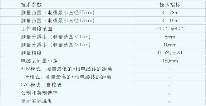 功能特點 1、可測量六根離地最高(低)導(dǎo)線的對地距離,自動換算線間(交叉跨越)垂直距離; 2、可測量室內(nèi)墻體尺寸,對電桿、變壓器和其他目標的距離可達18米; 3、測量方式:測量依次離地最低六根導(dǎo)線的距離。便于選擇同桿塔的上層或下層導(dǎo)線(例如可避開同桿架設(shè)的電力線或通訊線等); 4、儀器具備自檢功能可很容易讓用戶檢查儀器的精度,對著墻面就可校正儀器; 5、進一步改進了對雜散訊號的抑制,使得性能更穩(wěn)定、測量更方便,按一次鍵就完成全部操作。